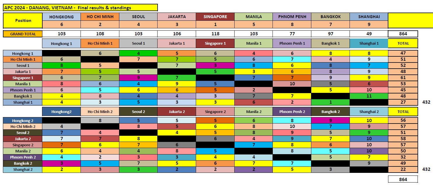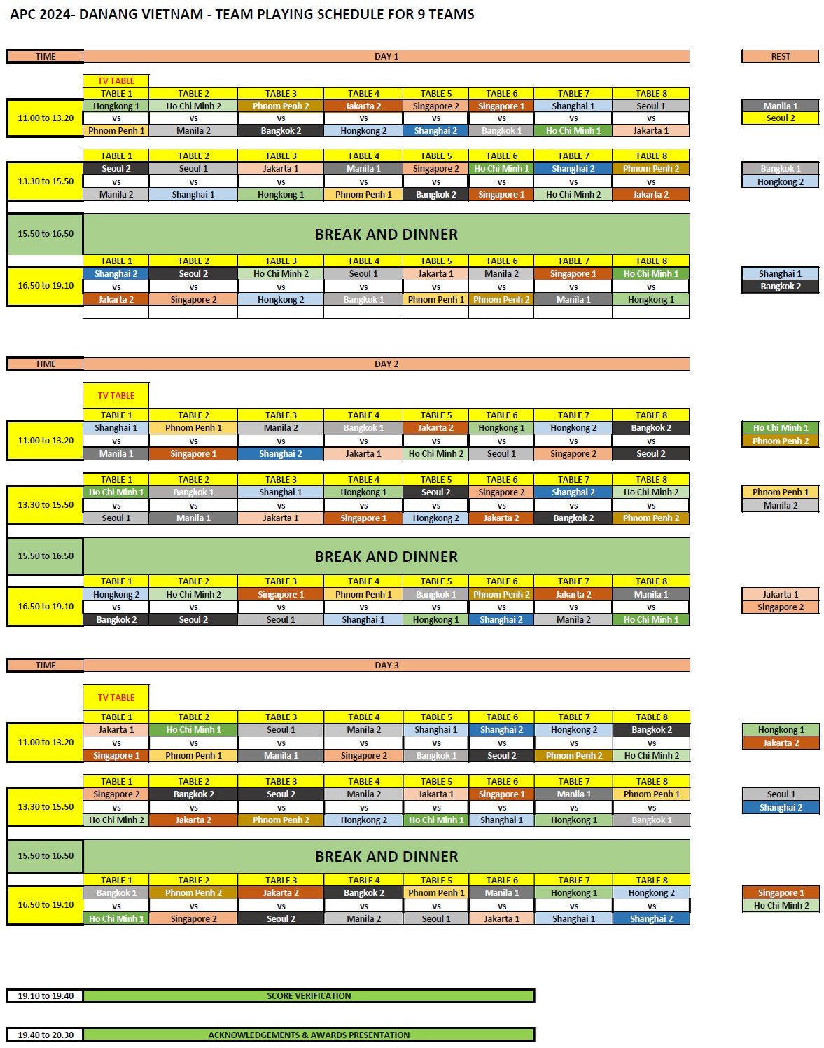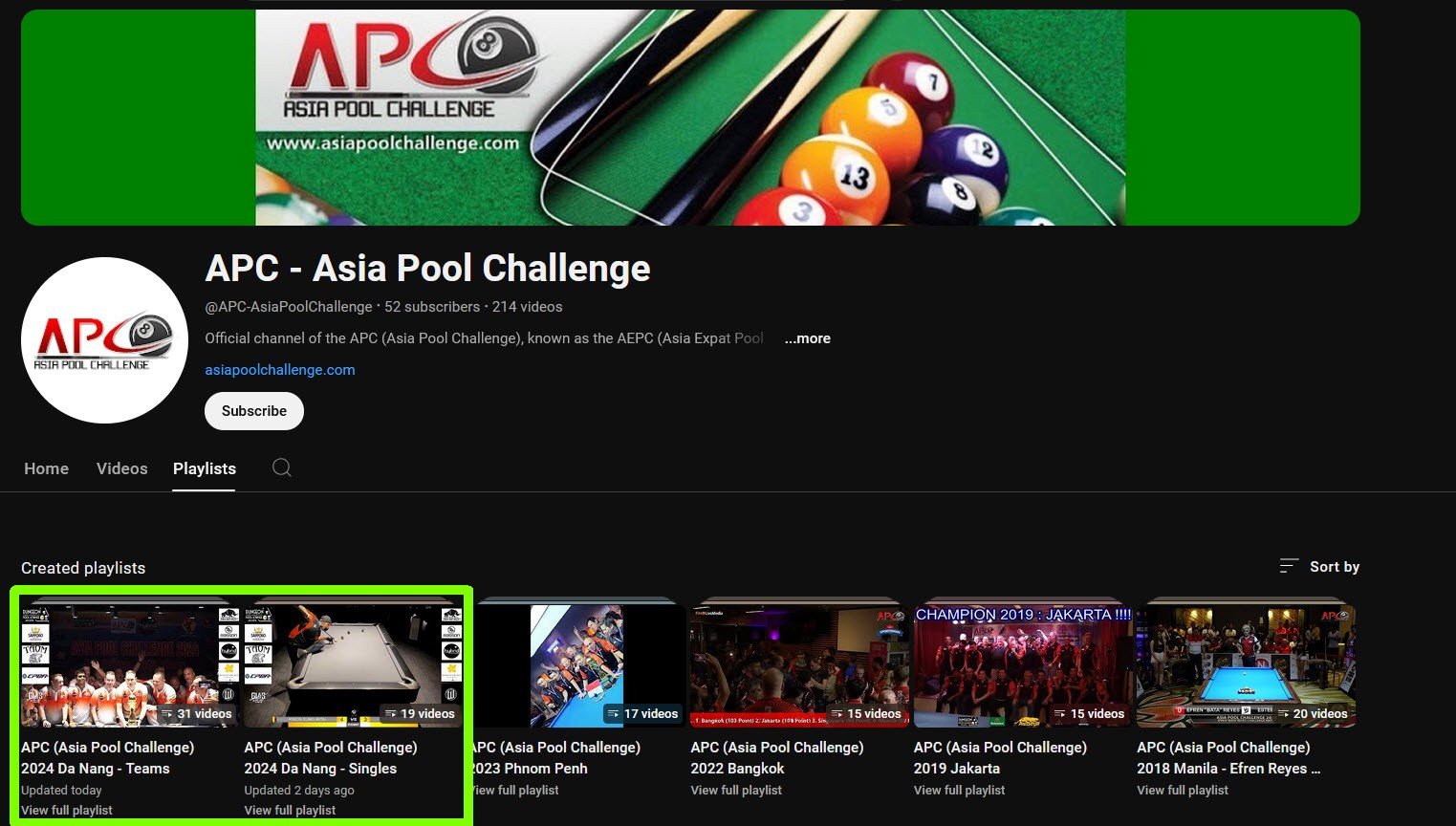 For those who want to relive the APC 2024 Da Nang best moments or want to catch up on the ones you missed, I have edited and uploaded the videos to the APC YouTube channel, not only the official TV table ones but also some from our Hong Kong, Jakarta and Singapore friends I found and might be in lower quality but give a chance to everybody to see themselves in action. I separated them in 2 playlists: one for the Singles and one for the Teams event.